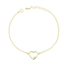 Bracciale catena forzatina con accessori in linea a forma di cuore con finitura lucida e con cubic zirconia bianchi incastonati.