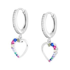 Orecchini a forma di Cerchio con Accessorio pendente a forma di Cuore con applicazione Zirconi Bianchi.