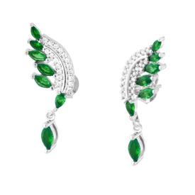 Orecchini a forma di goccia con Verde Smeraldo montato su 3 Griffe e cubic zirconia bianchi incastonati intorno.