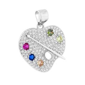 Ciondolo a forma di timone con finitura liscia e lucida e con cubic zirconia colore bianco incastonati.