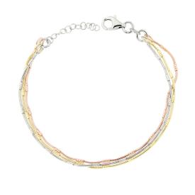 Bracciale con Tre fili con Accessori a forma di Cilindro con lavorazione diamantata e Accessorio centrale a forma di Bimba bombata...