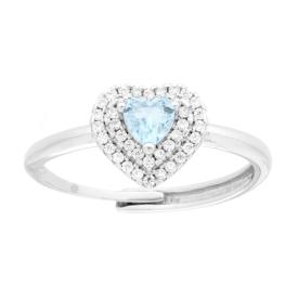 Anello con cuore Blu Zaffiro montato su 3 Griffe con cubic zirconia bianchi incastonati intorno.
