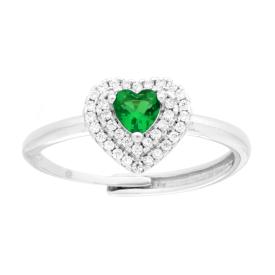 Anello veretta con cubic zirconia Verde Smeraldo a forma di cuore montato su 3 Griffe e cubic zirconia bianchi incastonati ai lati...