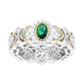 Anello a fascia con andamento incrociato con pietra tonda tomalina paraiba montato su 4 Griffe e cubic zirconia bianchi incastonat...
