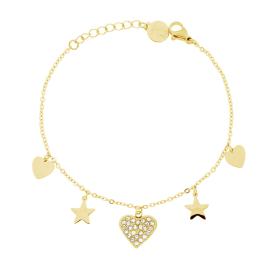Bracciale con catena Forzatina Diamantata con accessori a forma di stella pendenti con catena e con finitura liscia e lucida.