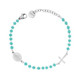 Bracciale Rosario con Catena e Accessori in linea a forma di Croce e Medaglietta con incisione laser della Madonna, con Grani a fo...