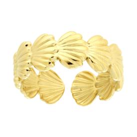 Anello a fascia compostao da sequenza di conchiglie con finitura rigata e lucida.