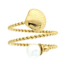 Anello contrarie con accessori tema marino a forma di conchiglia e stella marina, con finitura martellata e lucida.