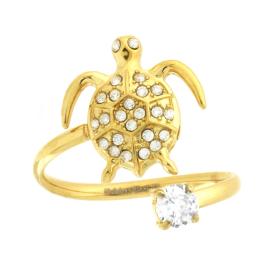 Anello contrarie a forma di serpente con crystal bianchi incastonati e finitura liscia e lucida.