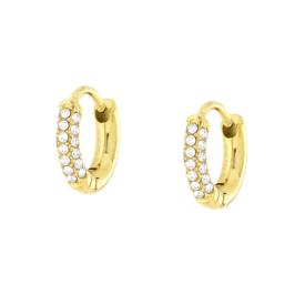 Orecchini cerchio con chiusura a scatto e crystal bianchi incastonati.