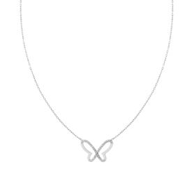 Collana con catena forzatina diamantata con accessorio a forma di farfalla con finitura lucida e crystal bianchi incastonati.