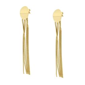 Orecchini con ovale bombato lucido al lobo con cinque fili di catena magik diamantata pendente.