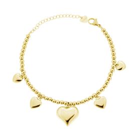Bracciale con catena di palline con accessorio pendente a forma di cuore con finitura liscia e lucida.
