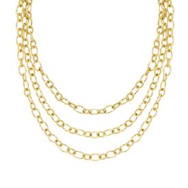 Collana con catena forzatina e accessori pendenti degradè a forma di farfalle, bombate e con finitura liscia e lucida.