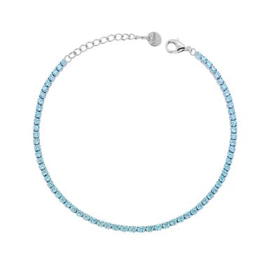 Bracciale Tennis con crystal Acquamarina incastonati su montatura 4 Griffe.