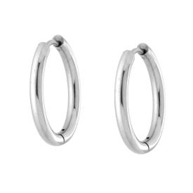 Orecchino a cerchio con chiusura a scatto e finitura liscia e lucida.