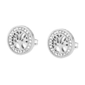 Orecchini punto luce tondo con crystal bianco montato su corona a 4 Griffe.