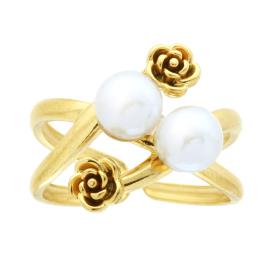 Anello contrarie con perle bianche e collari con crystal bianchi incastonati.