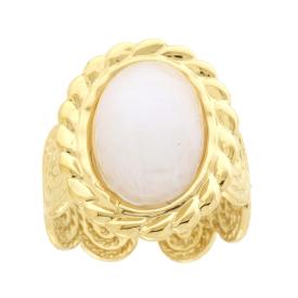 Anello contrarie doppio giro con filo con modellazione torchon e accessori alle estremità, perla bianca e conchiglia con finitura...