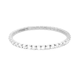 Bracciale tennis con crystal bianchi incastonati, accessorio centrale a forma di croce con crystal bianchi e finitura lucida.