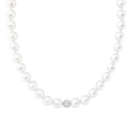 Collana con filo di perle annodate colore bianco con accessorio centrale sfera con crystal bianchi incastonati.