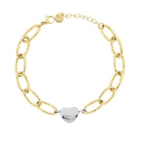 Bracciale con catena veneziana tonda e palline lisce con accessori pendenti a forma di cuore con finitura liscia e lucida.