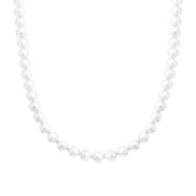 Collana con filo di perle scaramazza bianche sintetiche alternate a palline lisce e lucide.