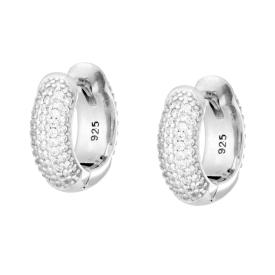 Orecchini cerchio a fascetta con chiusura a scatto e cubic zirconia bianchi incastonati con lavorazione pavè.