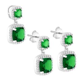 Parure Set composta da Ciondolo e Orecchini, Zircone a Quadrato colore Verde Smeraldo contornato da doppia fila di Zirconi Bianchi...