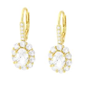 Orecchini chiusura a monachella con ovale Bianco con cubic zirconia bianchi incastonati intorno.