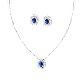 Parure Set Orecchini e Ciondolo con Cubic Zirconia Blu Zaffiro di forma tonda incastonato con Cubic Zirconia colore Bianchi montat...