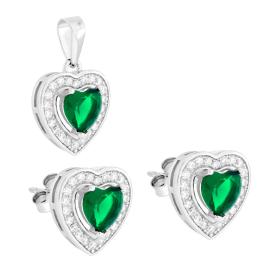 Parure Set Orecchini e Ciondolo con Cubic Zirconia Verde Smeraldo di forma tonda montato su incastonatura 4 Griffe con Cubic Zirco...