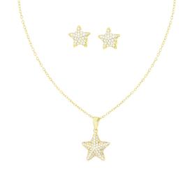 Parure Set Orecchini e Ciondolo a forma di croce con cubic zirconia bianchi incastonati e con sagoma infinito colore oro incrociat...