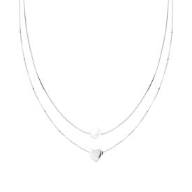 Collana a due fili con catena rolò diamantata con crystal nero e con accessori pendenti a forma di cuore, con finitura piatta, li...