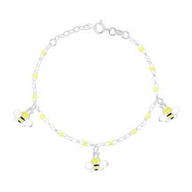 Bracciale con catena rolò con accessori a forma di fiocco con applicazione smalto multicolor.