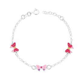 Bracciale con catena rolò con accessori a forma di fiore con applicazione smalto rosa e bianco.