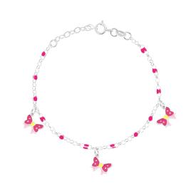 Bracciale con catena rolò diamantata con accessori centrali pendenti a forma di farfalla con applicazione smalto colore fucsia e ...