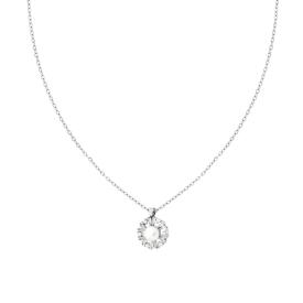 Collana con catena forzatina diamantata e accessorio pendente con perla e punto luce crystal bianco montato su 4 Griffe.