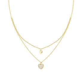 Collana con due fili catena forzatina diamantata con accessori a forma di cuore bombato, con crystal bianchi incastonati e finitur...