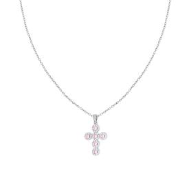 Collana con catena Forzatina Diamantata con accessorio pendente a forma di croce con inserti colore rosè e con finitura lucida e ...