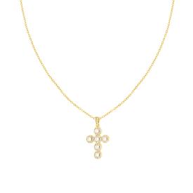 Collana con catena Veneziana tonda con accessorio pendente a forma di croce con dettaglio colore oro e finitura liscia e lucida.