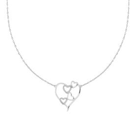 Collana con catena forzatina diamantata con accessorio a forma di due cuori incrociati con crystal bianchi incastonati.