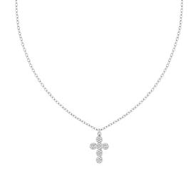 Collana con catena forzatina diamantata e accessorio pendente a forma di croce con crystal bianchi incastonati.