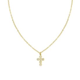 Collana con catena Veneziana tonda con accessorio pendente a forma di croce con crystal bianco incastonato e con finitura lucida.