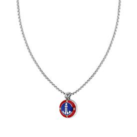 Collana con catena Forzatina Diamantata e accessorio pendente tondo lucido con soggetto timone con indicazioni marittime e smalto ...