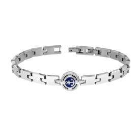 Bracciale catena con maglia imperniata con finitura liscia e lucida, accessorio centrale di forma tonda con timone, smalto colore ...