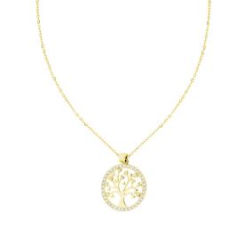 Collana con catena forzatina diamantata con accessorio pendente a forma di Albero della Vita con finitura lucida e con crystal bia...