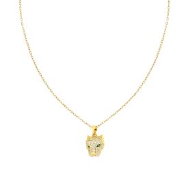 Collana con catena forzatina diamantata con accessorio a forma di Gatto con Crystal bianchi incastonati.