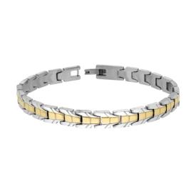 Bracciale catena con maglia bicicletta imperniata bicolore e finitura liscia e lucida.