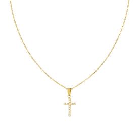 Collana con catena Veneziana tonda con accessorio pendente a forma di croce con dettaglio colore oro e finitura liscia e lucida.